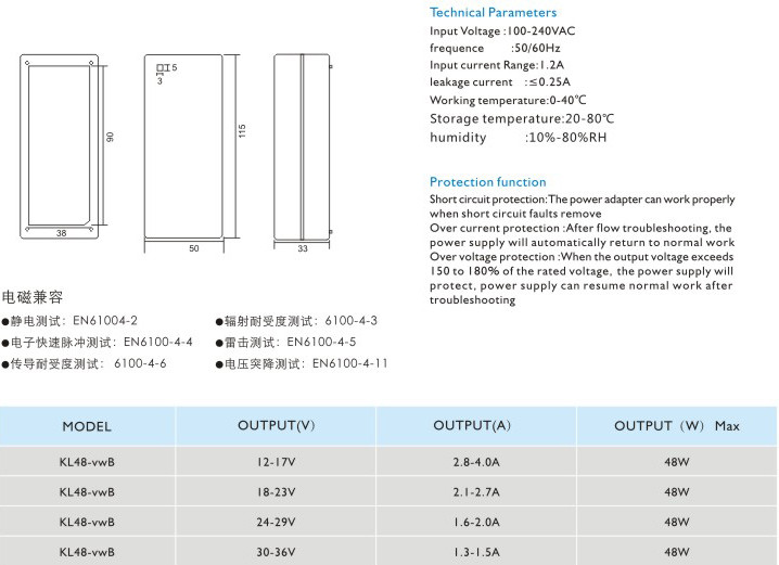 短路保護(hù):電源適配器在短路解除時(shí)能正常工作恢復(fù)